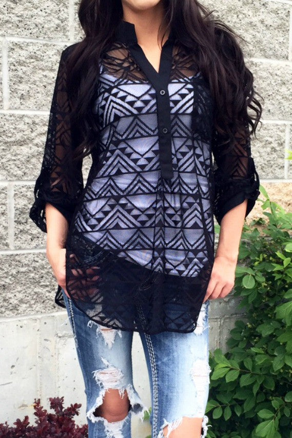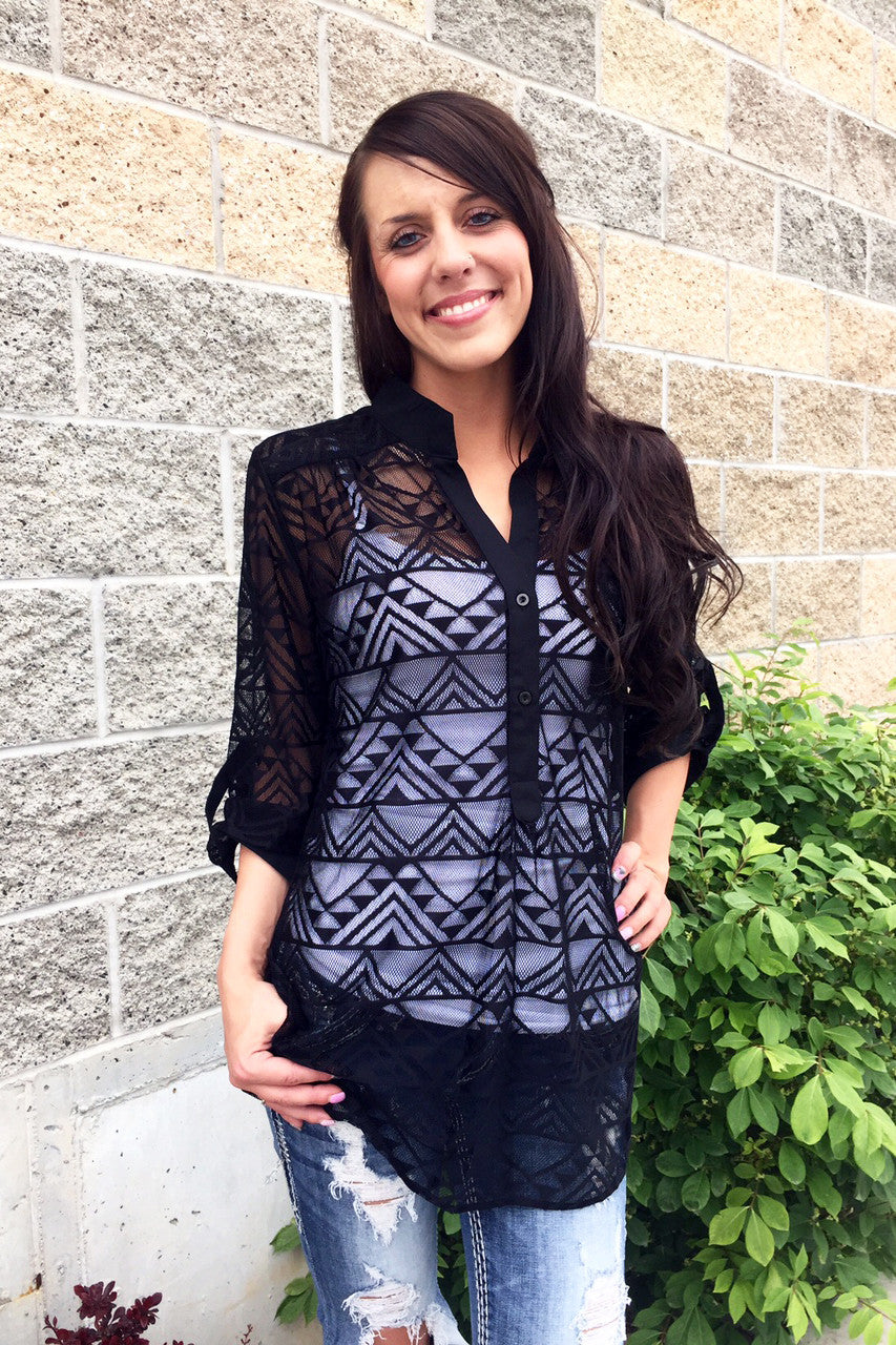 An awesome geometric pattern, vibrant colors, flattering cut and semi sheer mesh make the Quincy Blouse a captivating summer find! Throw on your favorite cami and shorts and you’re out the door looking fabulous in no time at all.