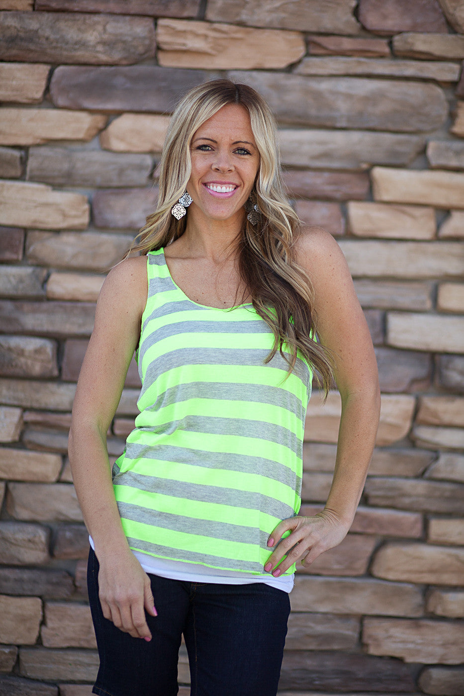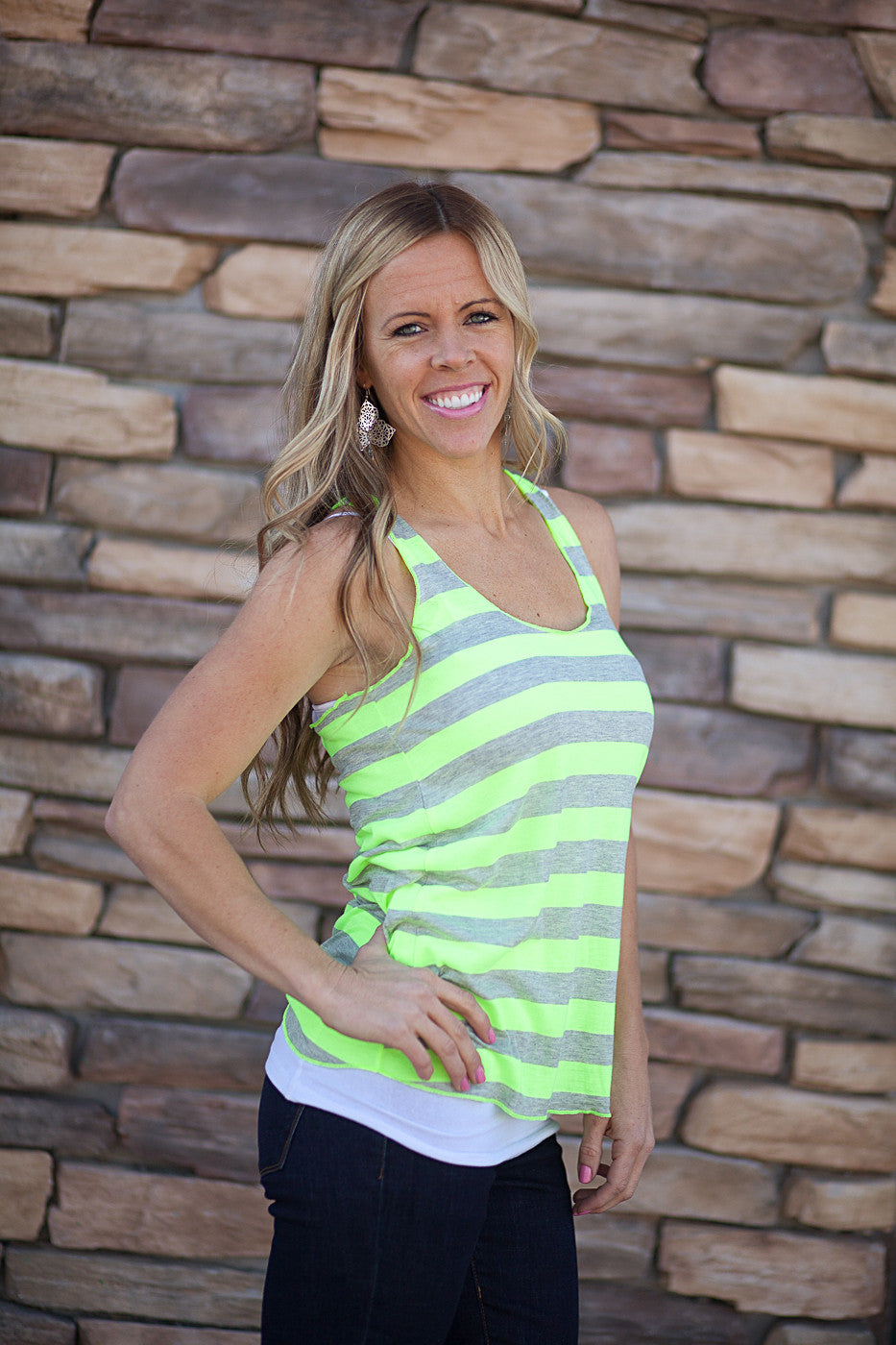 Vibrant neon colors and a casual look make our Raw Edged Racerback Tank a great pick for summer pool days. Perfect with a pair of shorts and your favorite flippies!
