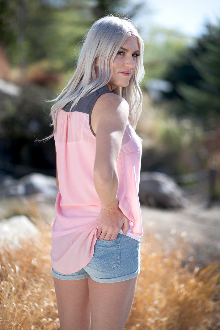 Sydney Sheer Sleeveless Top - Pink/Charcoal