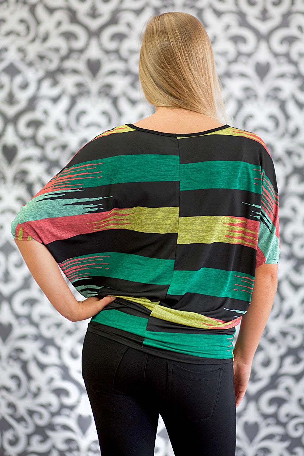 Vibrant Striped Dolman Top Black/Pink/Green/Yellow